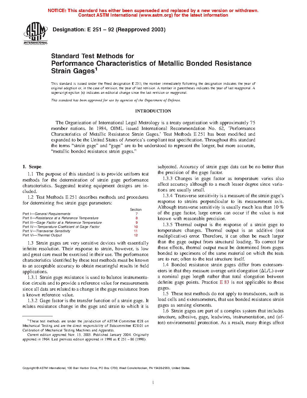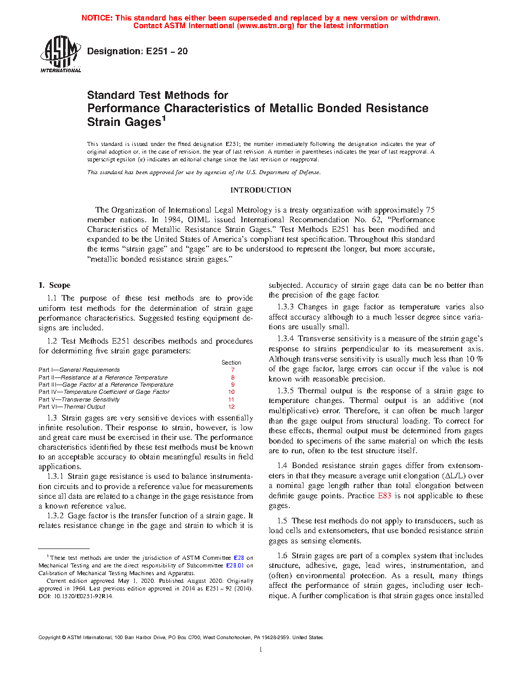 1.2 Test Methods E251 describes methods and procedures for determining five strain gage parameters:
