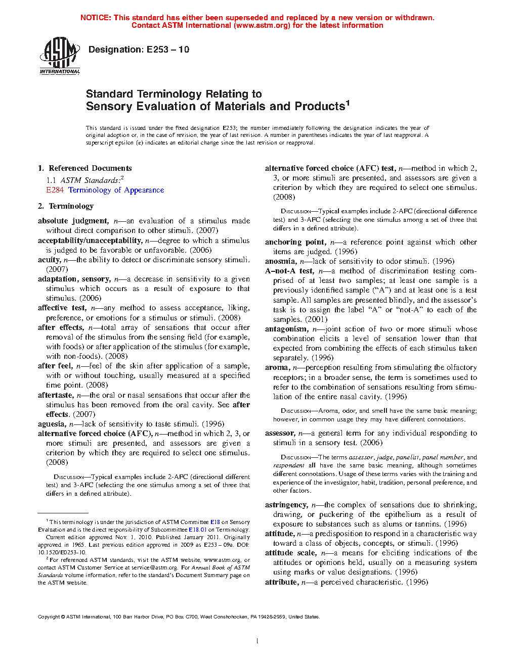 Standard Terminology Relating to Sensory Evaluation of Materials and Products