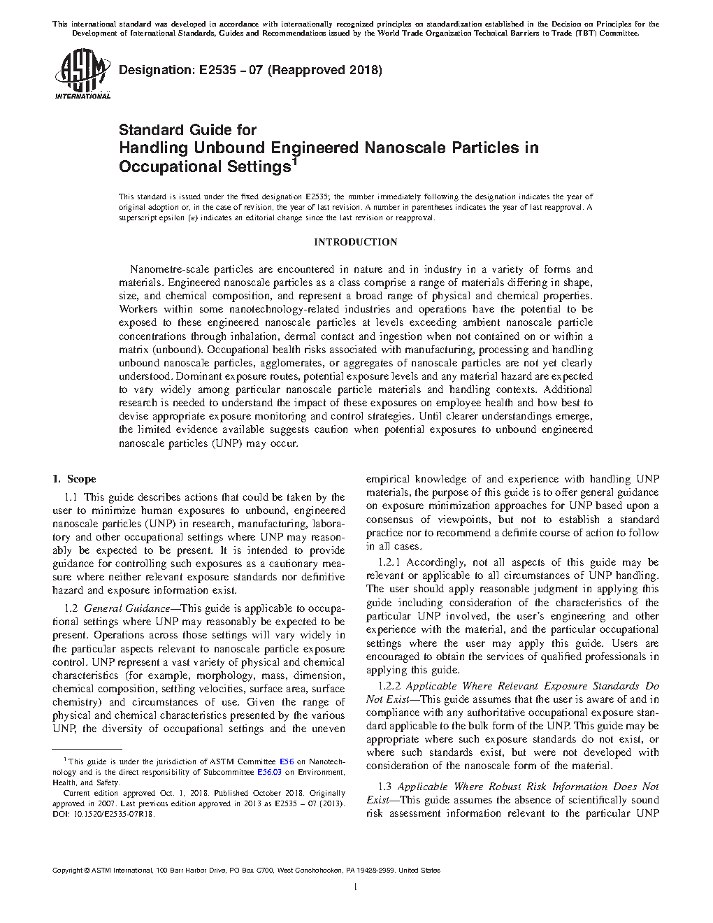 1.2.2 Applicable Where Relevant Exposure Standards Do Not Exist—This guide assumes that the user is aware of and in compliance with any authoritative occupational exposure standard applicable to the bulk form of the UNP. This guide may be appropriate where such exposure standards do not exist, or where such standards exist, but were not developed with consideration of the nanoscale form of the material.