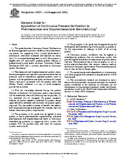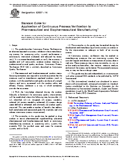 1.1 This guide describes Continuous Quality Verification (CQV) as an approach to process validation where manufacturing process (or supporting utility system) performance is continuously monitored, evaluated and adjusted (as necessary). It is a science-based approach to verify that a process is capable and will consistently produce product meeting its predetermined critical quality attributes. CQV is similarly described as Continuous Quality Assurance (U.S. FDA) and Continuous Process Verification (ICH Q8).