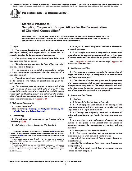 4.1 This practice is intended primarily for the sampling of copper and copper alloys for compliance with compositional specification requirements.