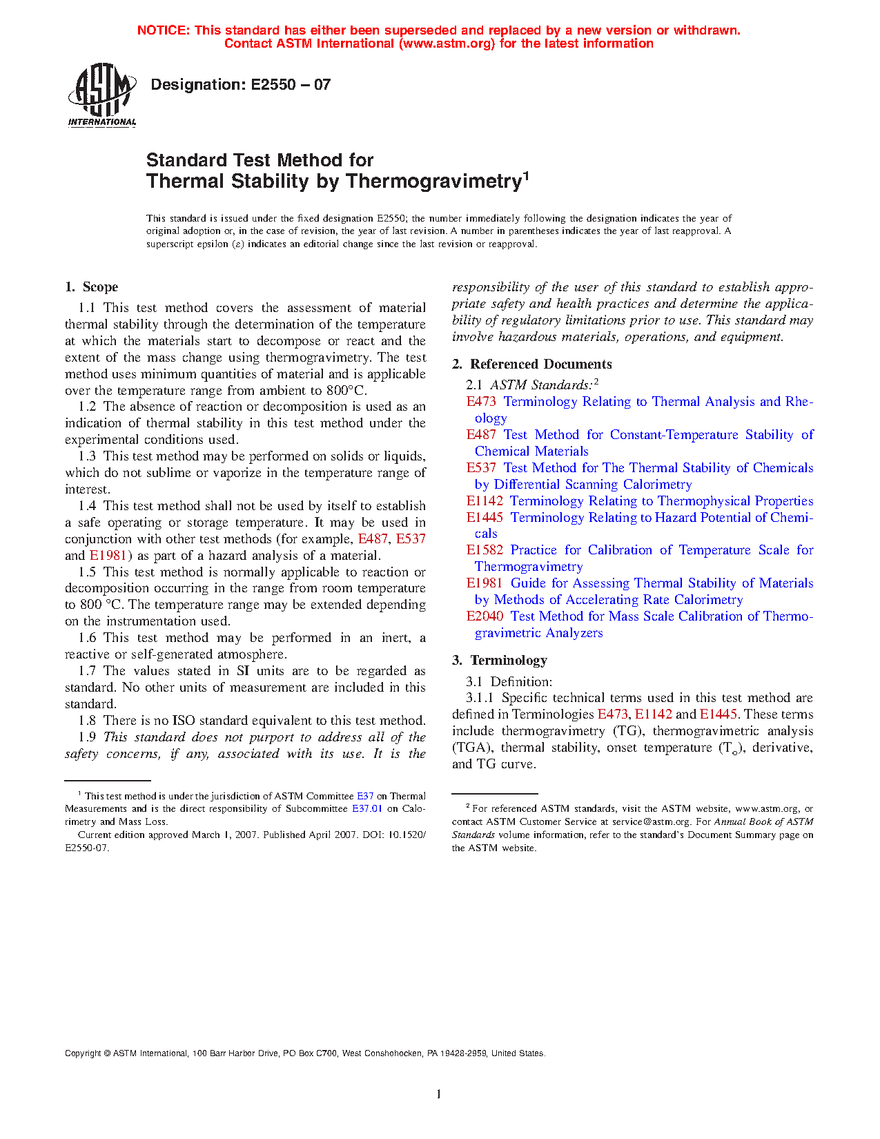 1.4 This test method shall not be used by itself to establish a safe operating or storage temperature. It may be used in conjunction with other test methods (for example, Test Methods E487 and E537, and Guide E1981) as part of a hazard analysis of a material.