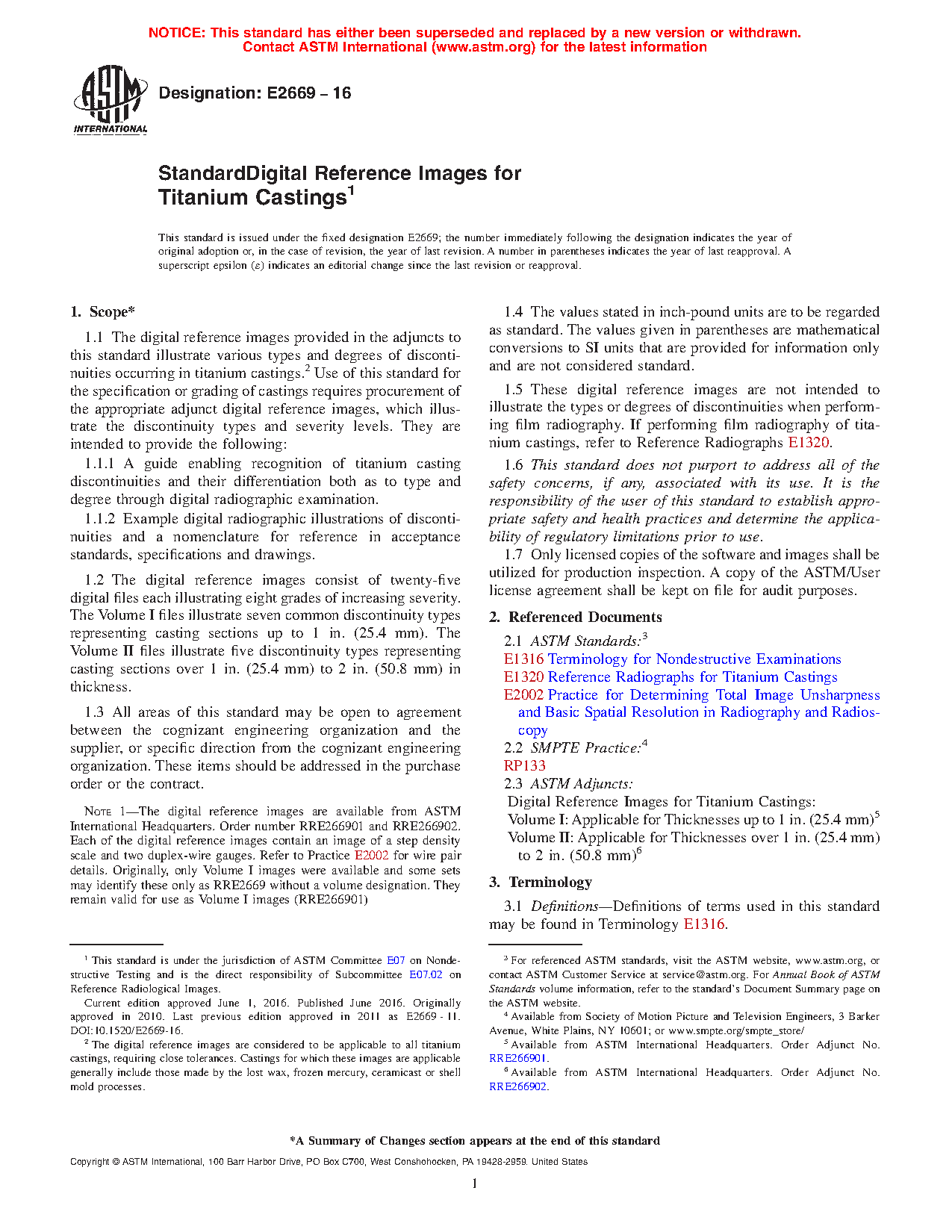 Note 1: The digital reference images are available from ASTM International Headquarters. Order number RRE2669 and RRE266902. Each of the digital reference images contain an image of a step density scale and two duplex-wire gauges. Refer to Practice E2002 for wire pair details. Originally, only Volume I images were available and some sets may identify these only as RRE2669 without a volume designation. They remain valid for use as Volume I images.