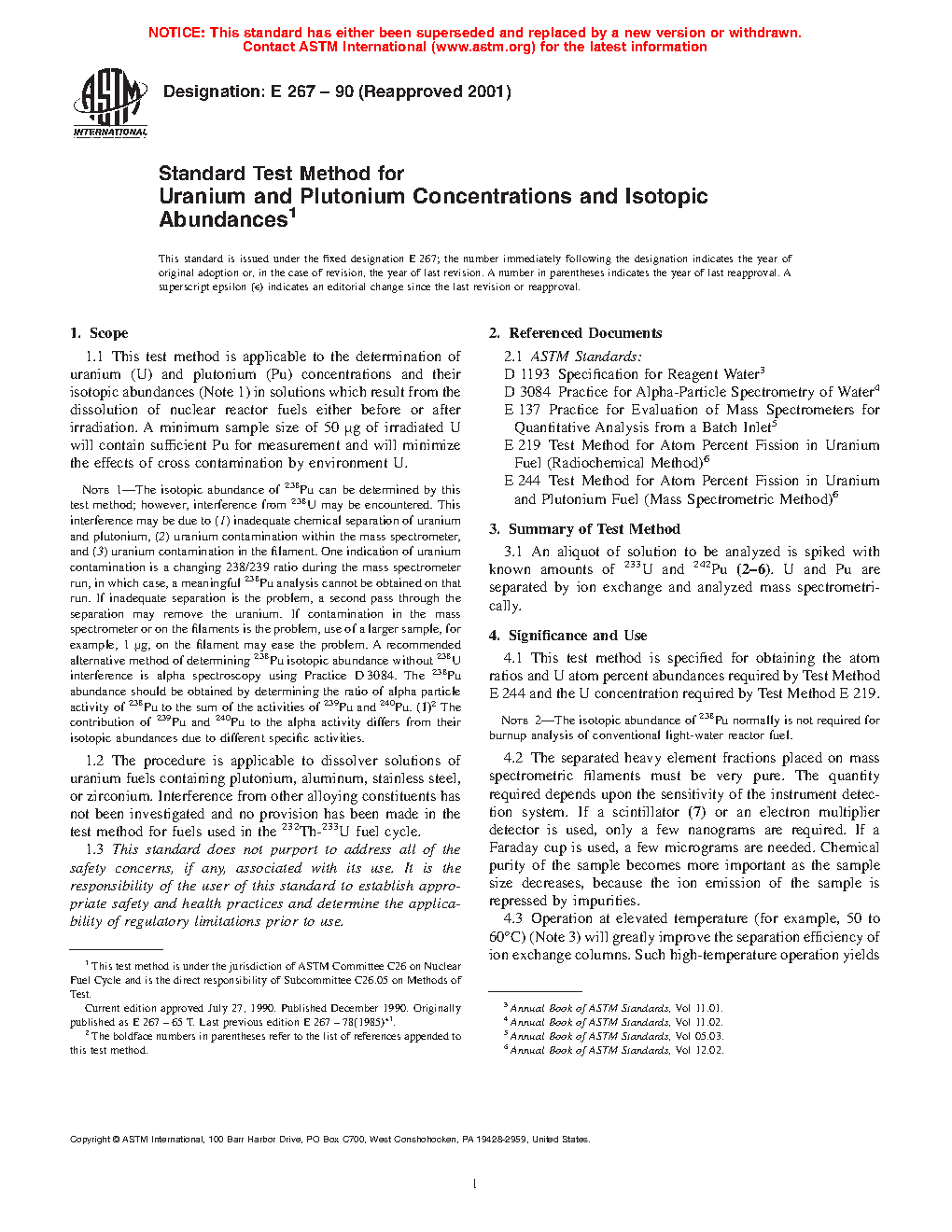 ASTM E267-90(2001) (R1990)