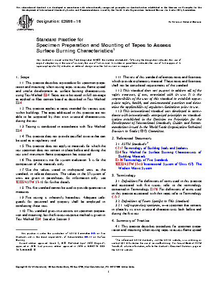 1.1 This practice describes a procedure for specimen preparation and mounting when testing tapes to assess flame spread and smoke development as surface burning characteristics using Test Method E84. Tapes are to be tested in full coverage as applied to fiber cement board as described in Test Method E84.