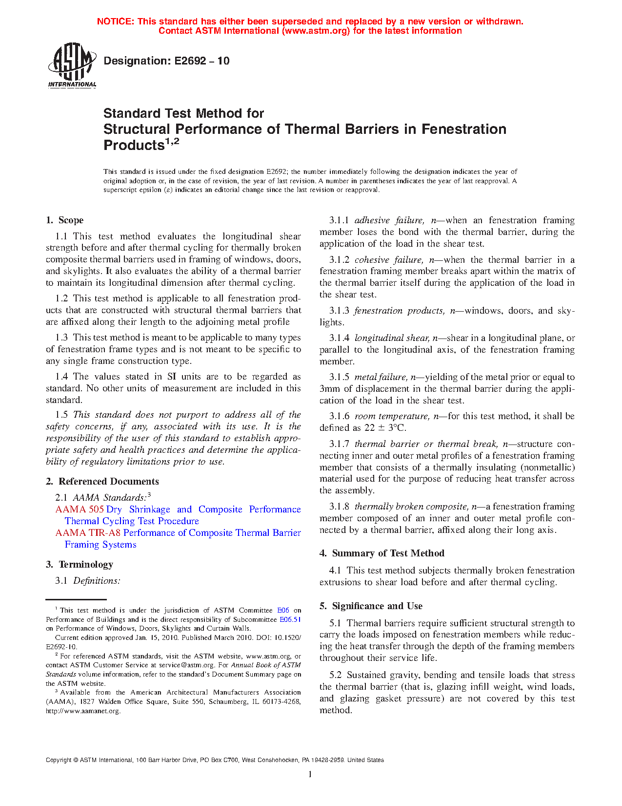 1.2 This test method is applicable to all fenestration products that are constructed with structural thermal barriers that are affixed along their length to the adjoining metal profile
