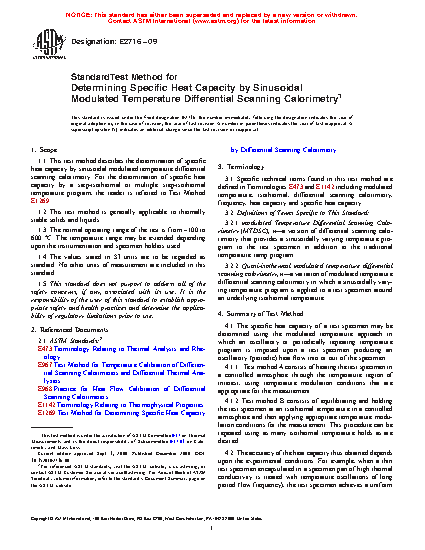 5.1 Modulated temperature differential scanning calorimetric measurements provide a rapid, simple method for determining specific heat capacities of materials, even under quasi-isothermal conditions.