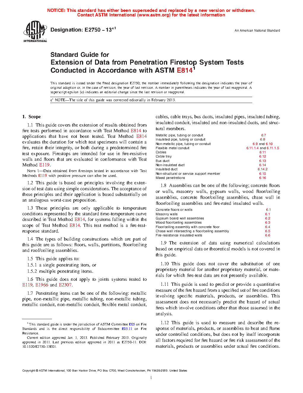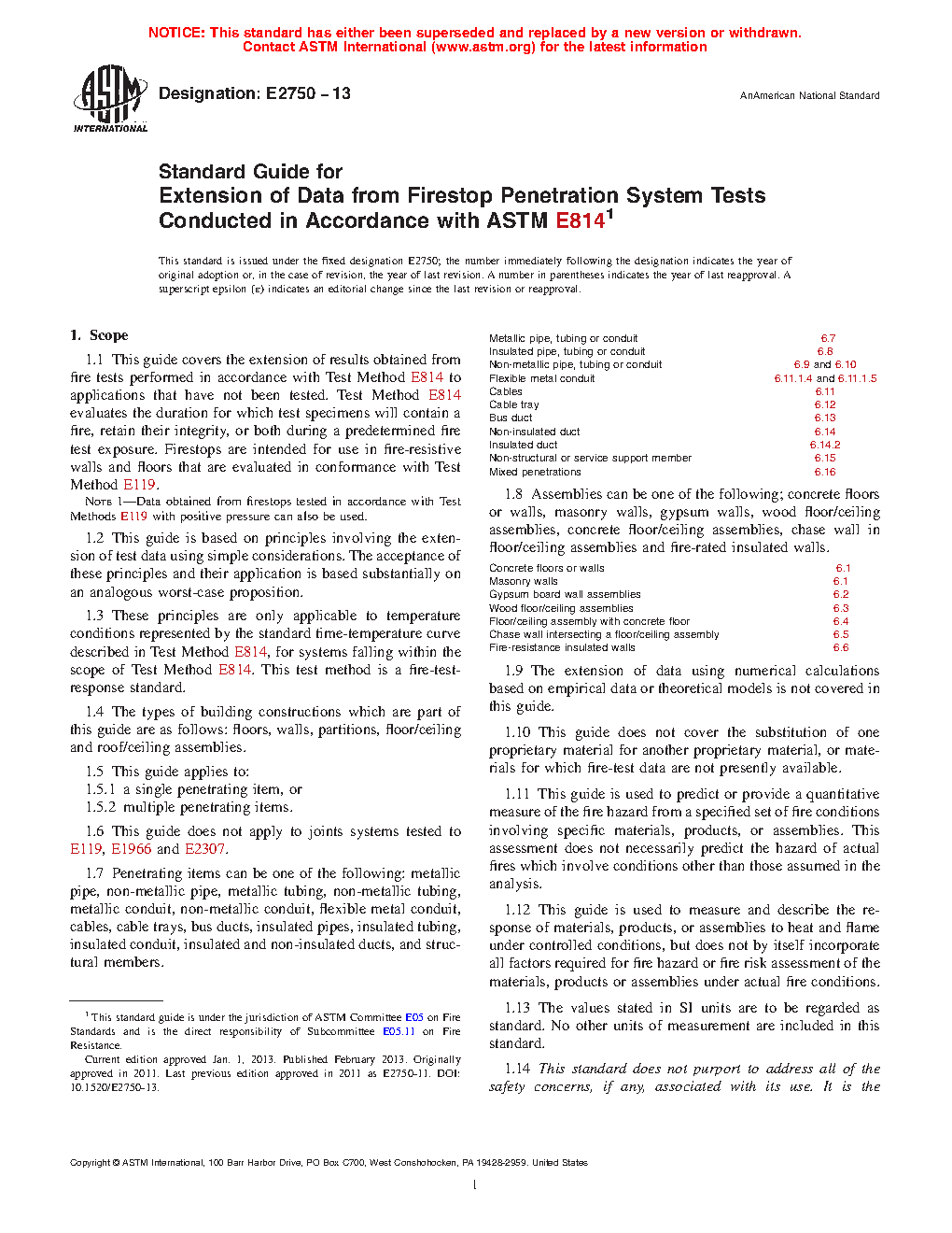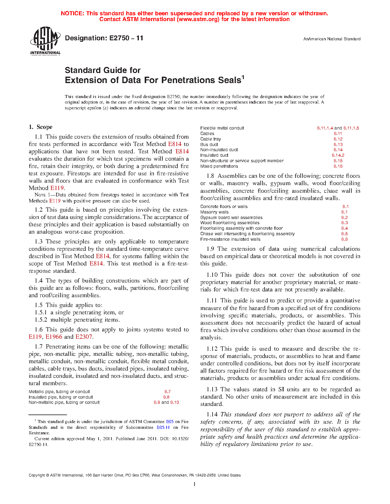 Users of this guide must have knowledge and understanding of the provisions of Test Method E119 and Test Method E814 including those pertaining to conditions of acceptance.