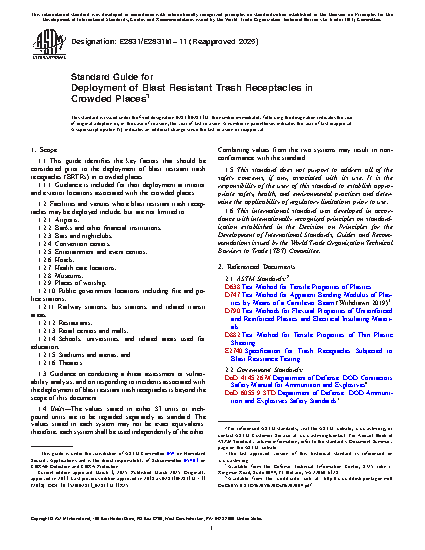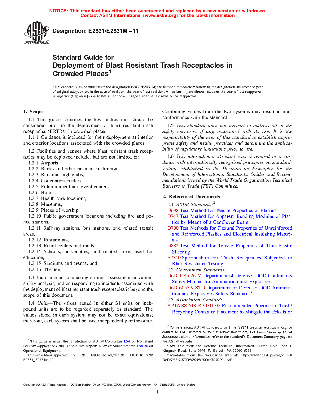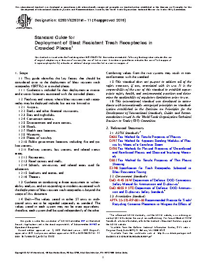 1.1 This guide identifies the key factors that should be considered prior to the deployment of blast resistant trash receptacles (BRTRs) in crowded places.