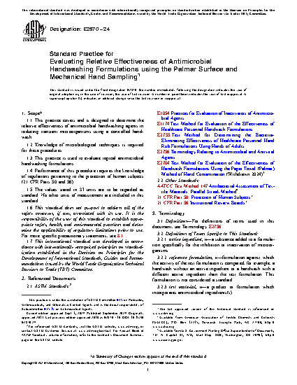 1.1 This practice covers and is designed to determine the relative effectiveness of antimicrobial handwashing agents in reducing transient microorganisms using a controlled handwash.