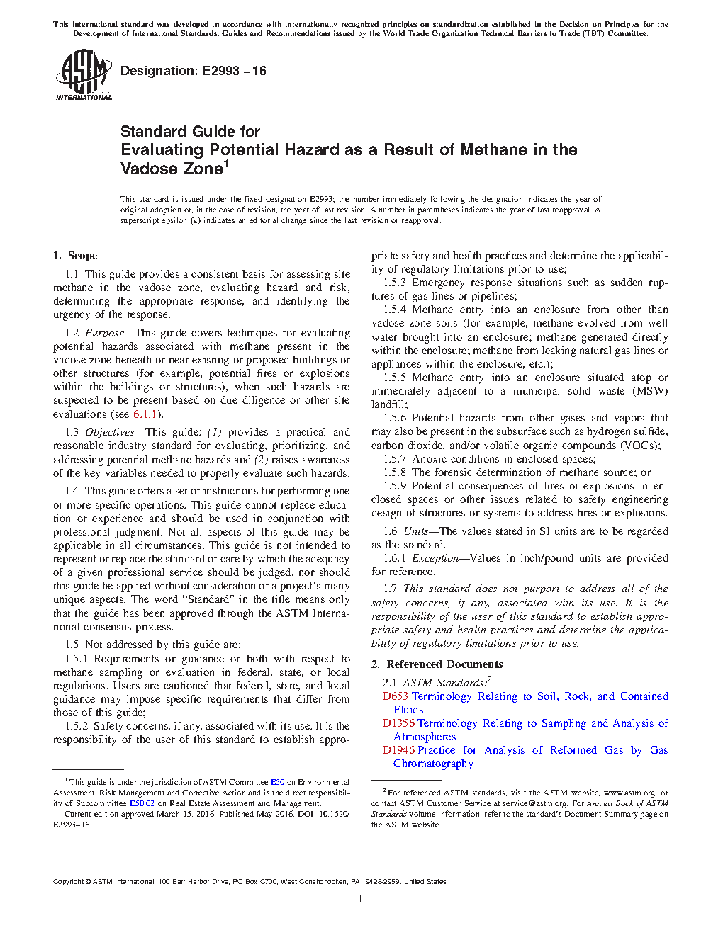 1.3 Objectives—This guide: (1) provides a practical and reasonable industry standard for evaluating, prioritizing, and addressing potential methane hazards and (2) raises awareness of the key variables needed to properly evaluate such hazards.