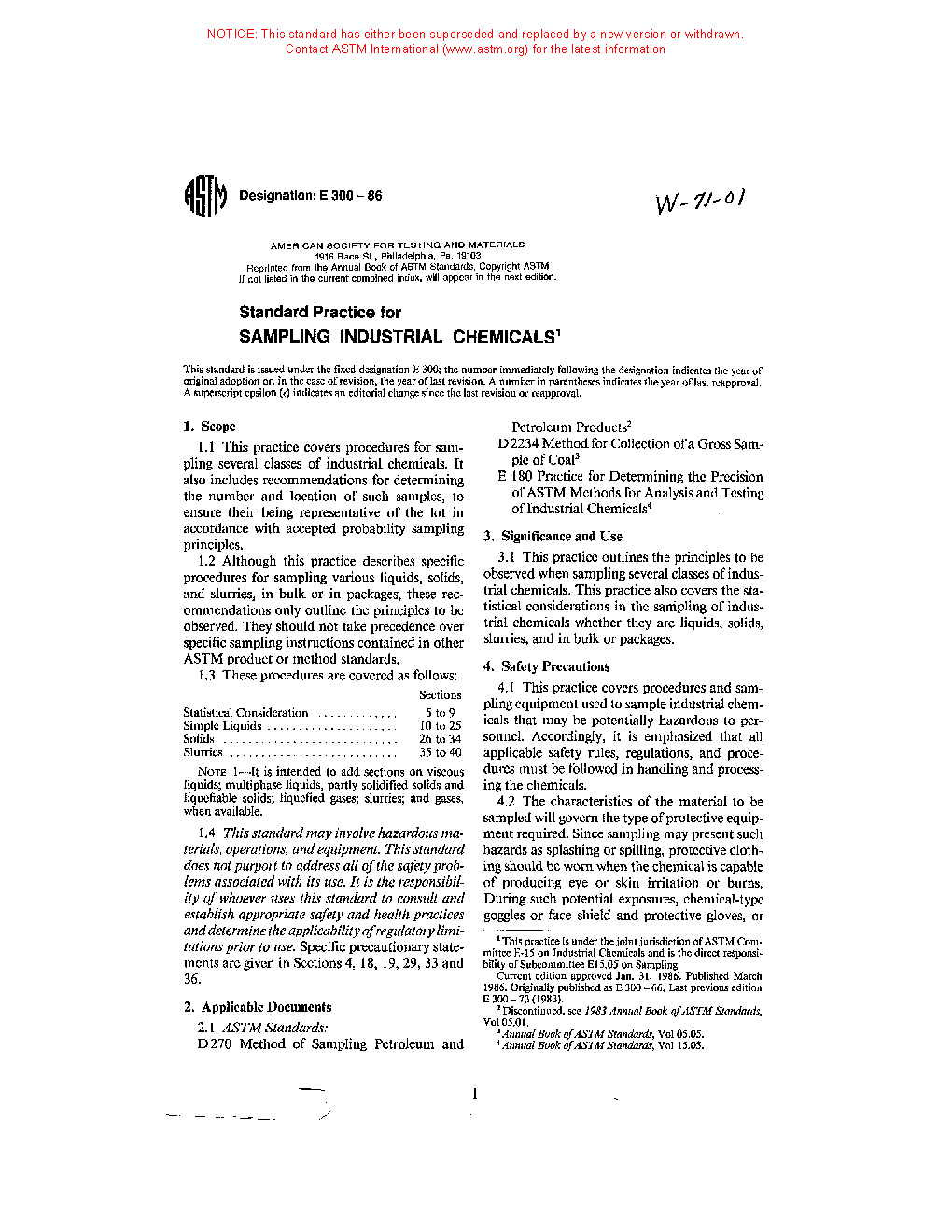 1.4 This standard does not purport to address all of the safety concerns, if any, associated with its use. It is the responsibility of the user of this standard to establish appropriate safety and health practices and determine the applicability of regulatory limitations prior to use. Specific precautionary statements are given in Sections 6, 19, 20, 30, 34, and 37.