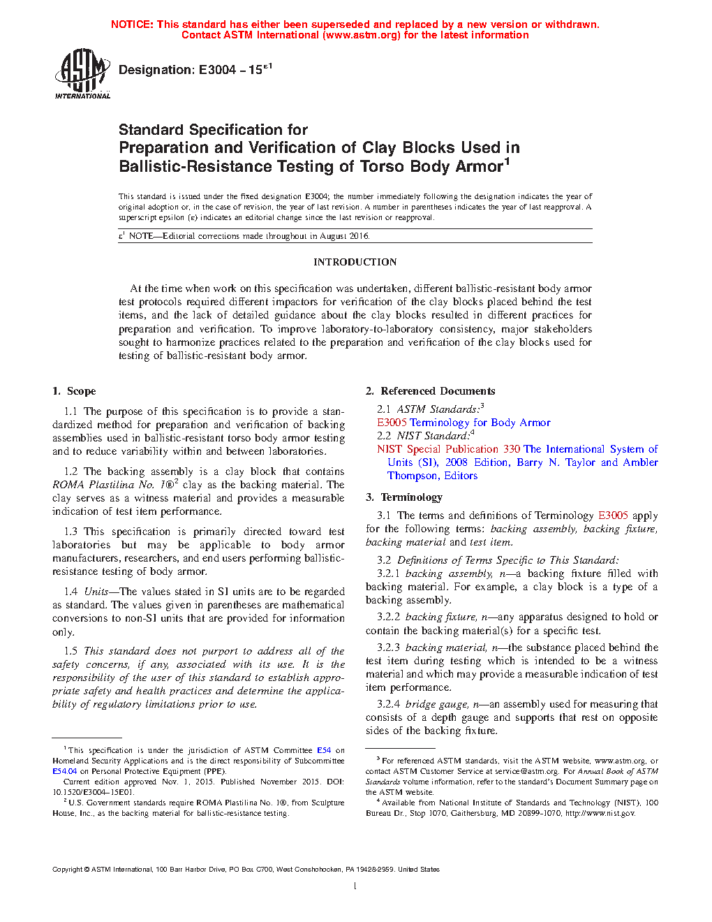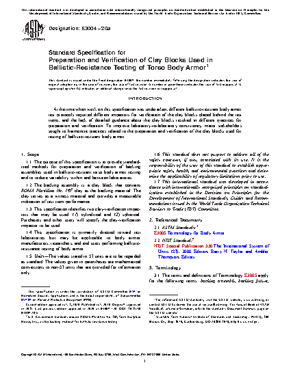 1.1 The purpose of this specification is to provide a standardized method for preparation and verification of backing assemblies used in ballistic-resistant torso body armor testing and to reduce variability within and between laboratories.