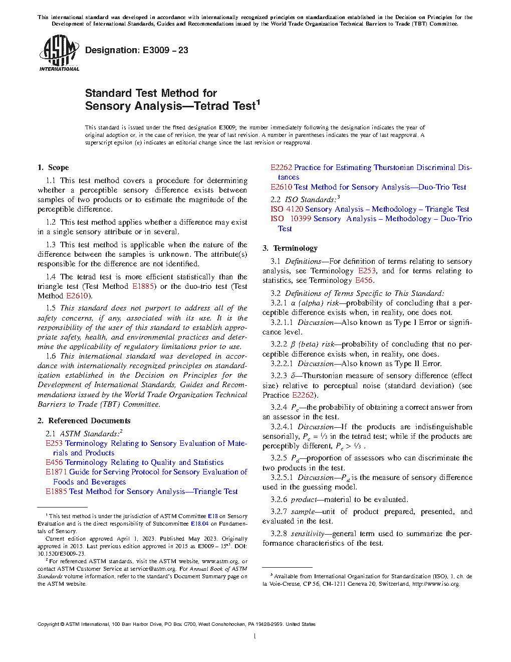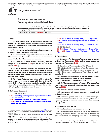 1.4 The tetrad test is more efficient statistically than the triangle test (Test Method E1885) or the duo-trio test (Test Method E2610).