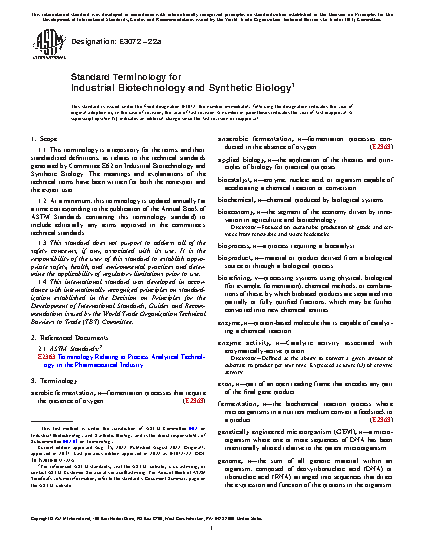 1.1 This terminology is a repository for the terms, and their standardized definitions, as relates to the technical standards generated by Committee E62 on Industrial Biotechnology. The meanings and explanations of the technical terms have been written for both the nonexpert and the expert user.