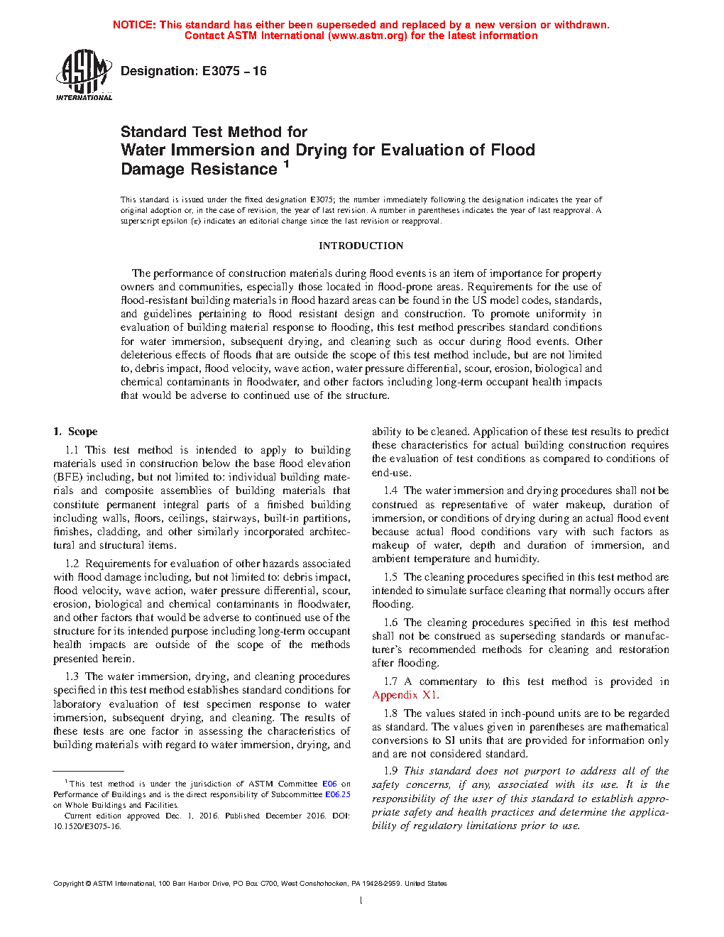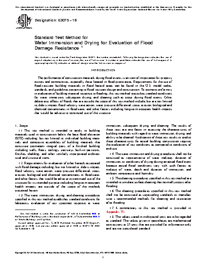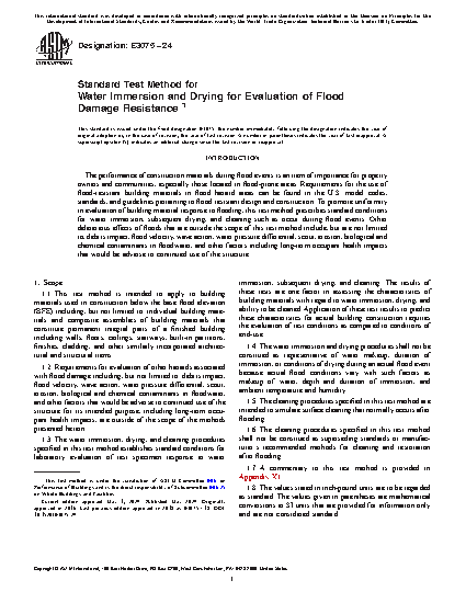 1.4 The water immersion and drying procedures shall not be construed as representative of water makeup, duration of immersion, or conditions of drying during an actual flood event because actual flood conditions vary with such factors as makeup of water, depth and duration of immersion, and ambient temperature and humidity.