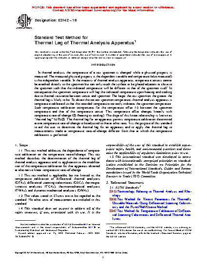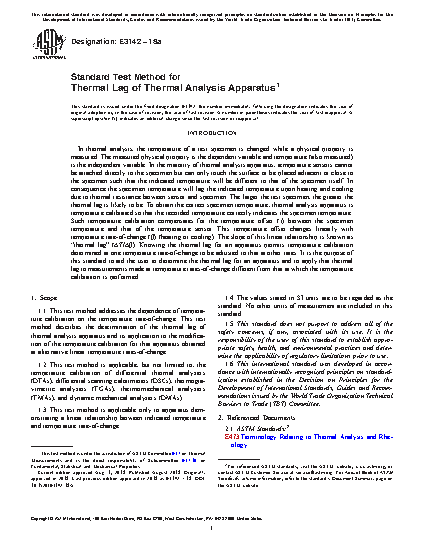 1.1 This test method addresses the dependence of temperature calibration on the temperature rate-of-change. This test method describes the determination of the thermal lag of thermal analysis apparatus and its application to the modification of the temperature calibration for that apparatus obtained at alternative linear temperature rates-of-change.