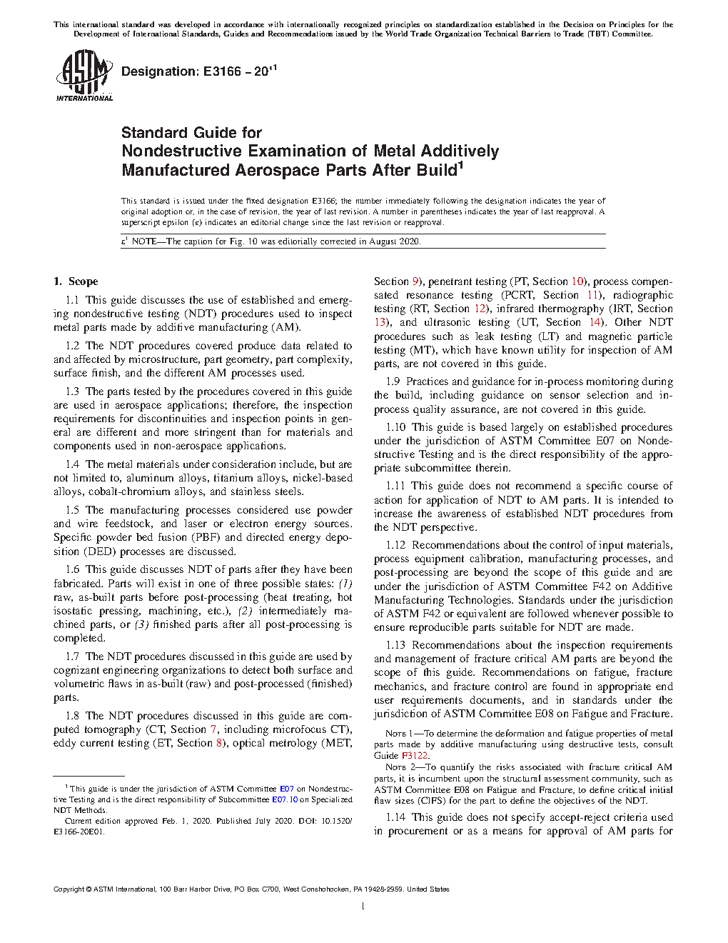 1.2 The NDT procedures covered produce data related to and affected by microstructure, part geometry, part complexity, surface finish, and the different AM processes used.