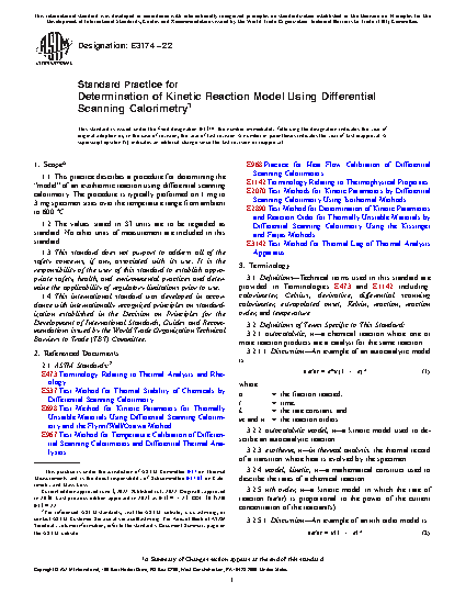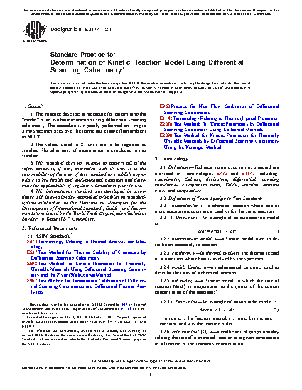 1.1 This practice describes a procedure for determining the “model” of an exothermic reaction using differential scanning calorimetry. The procedure is typically performed on 1–3 mg specimen sizes over the temperature range from ambient to 600 °C.