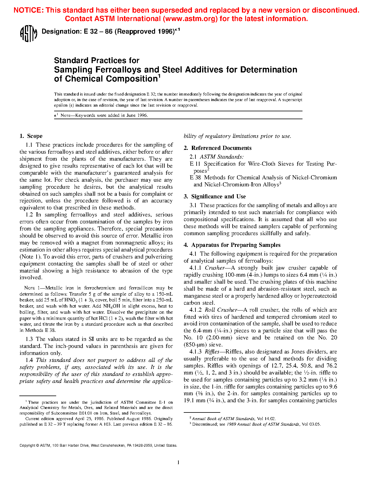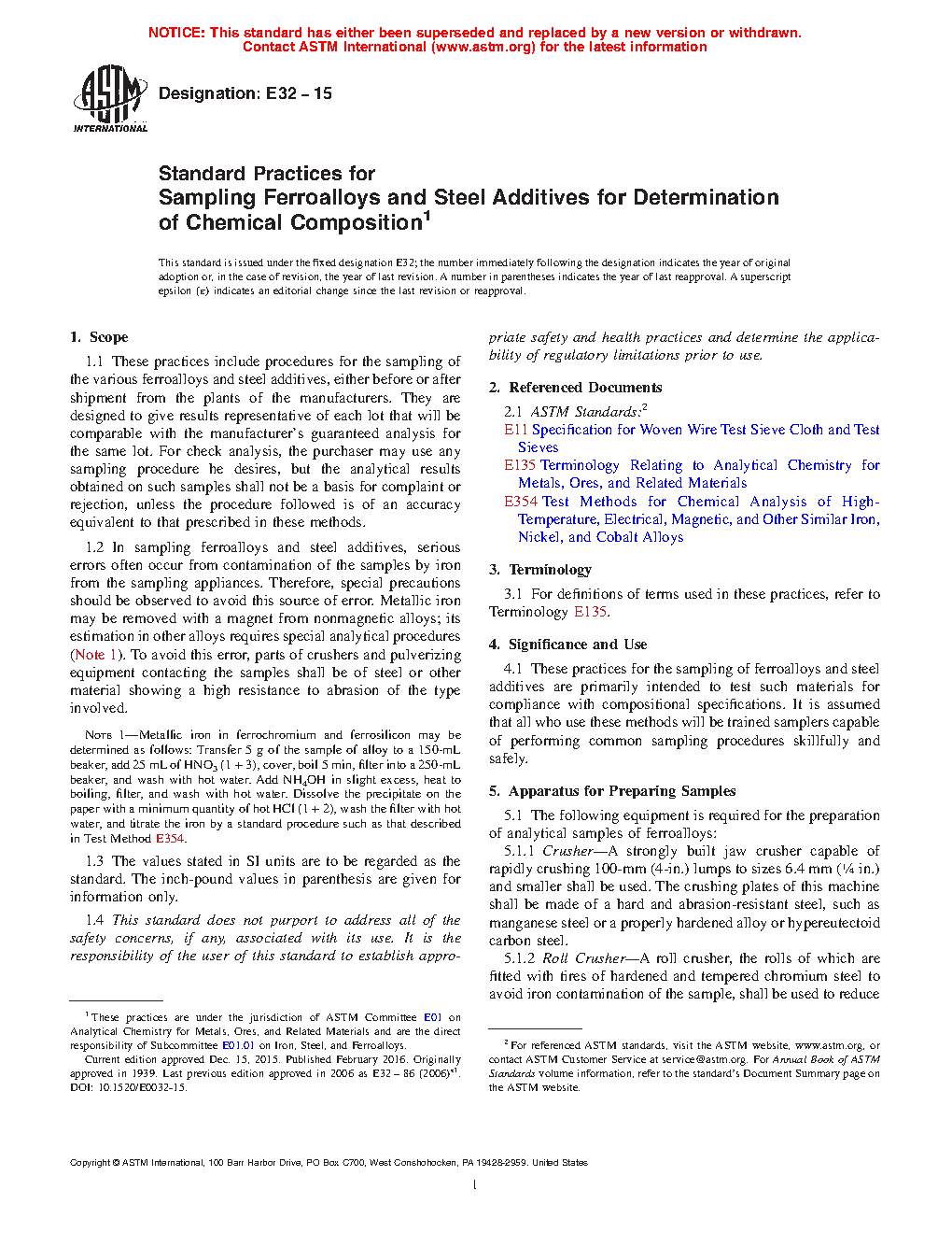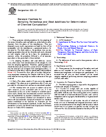 Standard Practices for Sampling Ferroalloys and Steel Additives for Determination of Chemical Composition