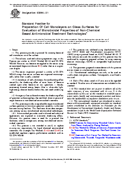 1.6.2 This practice is not intended to satisfy or replace existing test requirements for liquid chemical antimicrobial treatments (for example Test Methods E1153 and E2197) or established regulatory agency performance standards such as US EPA MB-06.