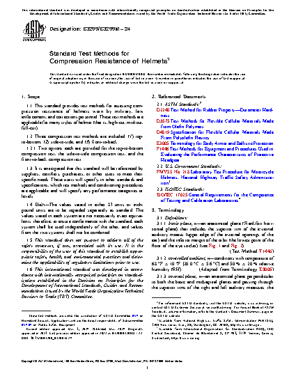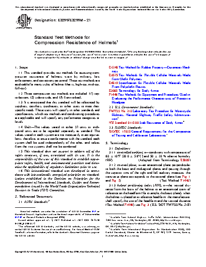 1.1 This standard provides test methods for assessing compression resistance of helmets worn by military, law enforcement, and corrections personnel. These test methods are applicable for many styles of helmet (that is, high-cut, mid-cut, full-cut).