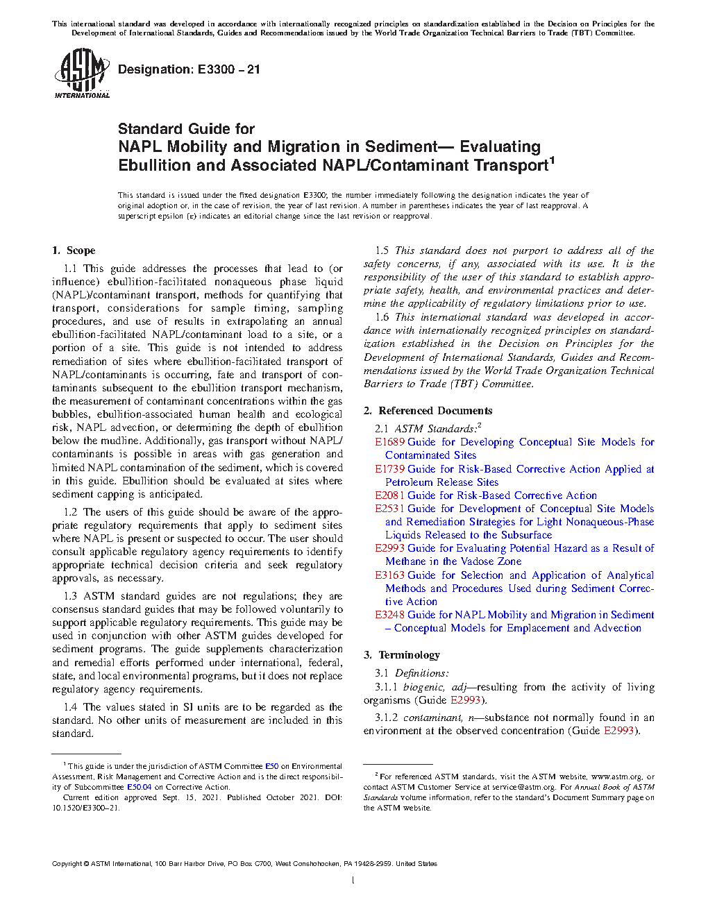 4.10 This guide provides an overview of the unique characteristics influencing ebullition-facilitated NAPL/contaminant transport in aquatic sediment environments. This guide is not intended to provide specific guidance on sediment site investigation, risk assessment, monitoring, or remedial action.