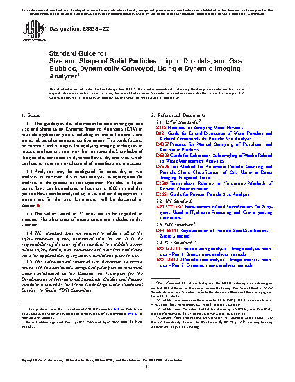 1.1 This guide provides information for determining particle size and shape using Dynamic Imaging Analyzers (DIA) in multiple application points including in-line, at-line and stand alone, lab based or portable, configurations. This guide focuses on concepts and strategies for applying imaging techniques to process applications in a way that improves the knowledge of the particles contained in dynamic flows, dry and wet, which can lead to more improved control of manufacturing processes.