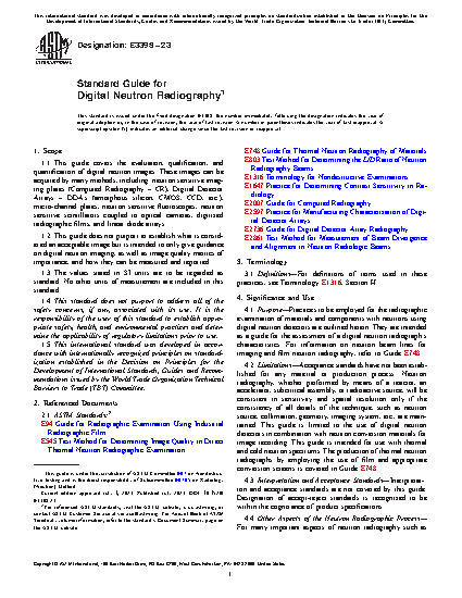 1.2 This guide does not purport to establish what is considered an acceptable image but is intended to only give guidance on digital neutron imaging, as well as image quality metrics of importance, and how they can be measured and reported.