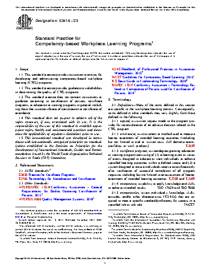 1.1 This standard practice provides instruction to entities for developing and administering competency-based work-based learning (CWL) programs.