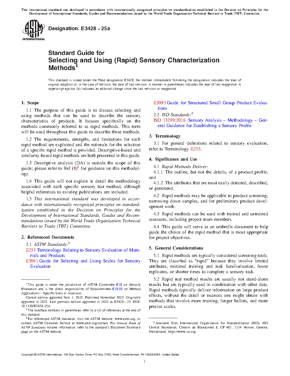 1.4 This guide will not explain in detail the methodology associated with each specific sensory test method, although helpful references to existing publications are included.