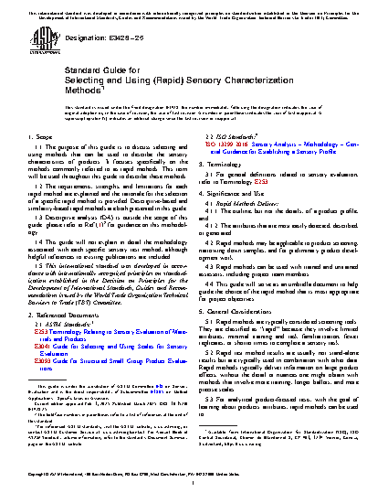 1.1 The purpose of this guide is to discuss selecting and using methods that can be used to describe the sensory characteristics of products. It focuses specifically on the methods commonly referred to as rapid methods. This term will be used throughout this guide to describe these methods.
