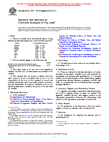 1.1 These test methods cover the chemical analysis of pig lead having chemical compositions within the following limits: