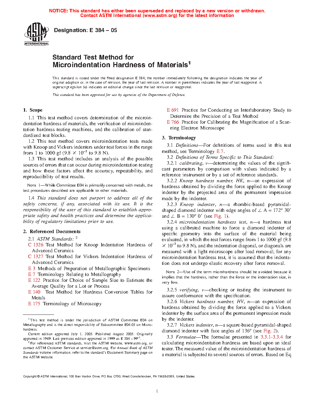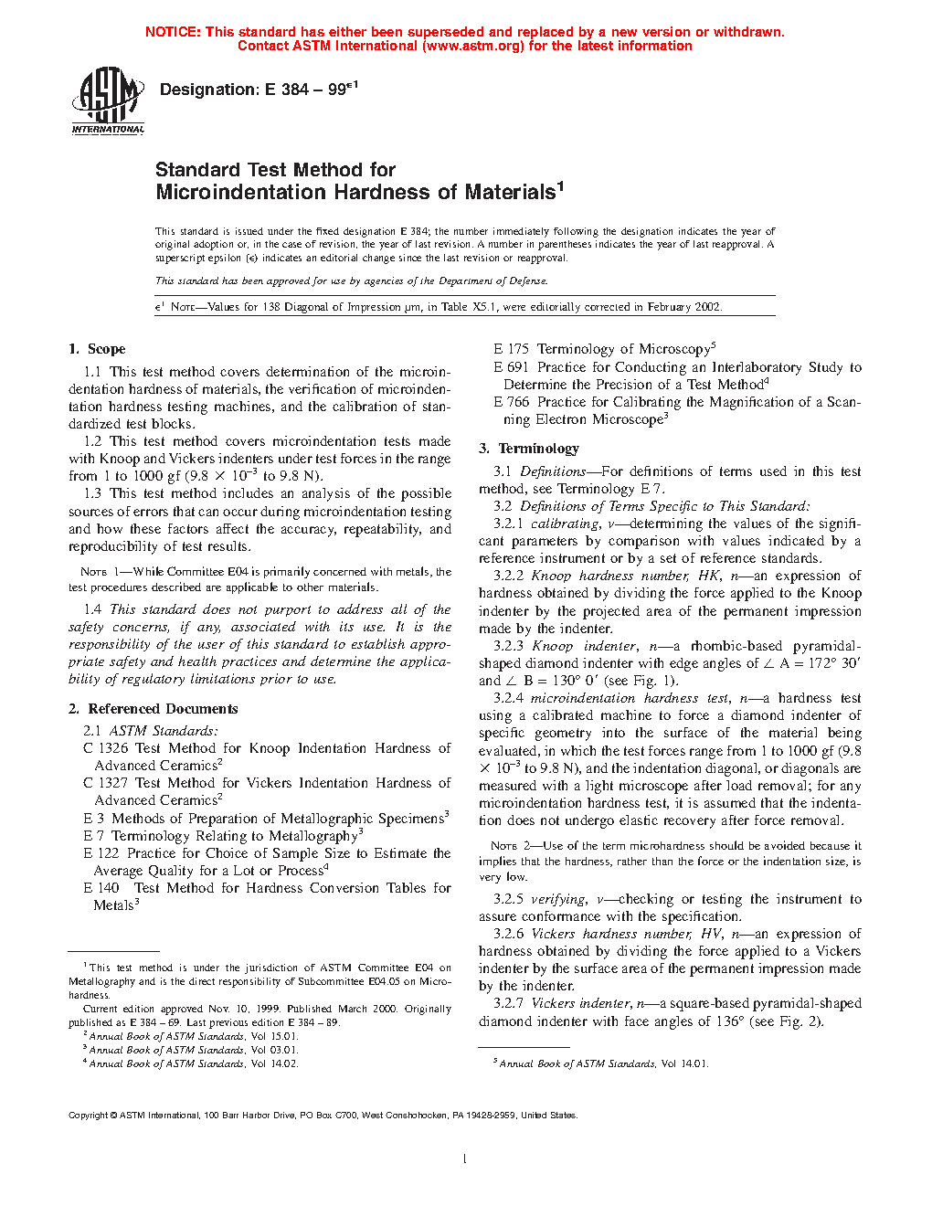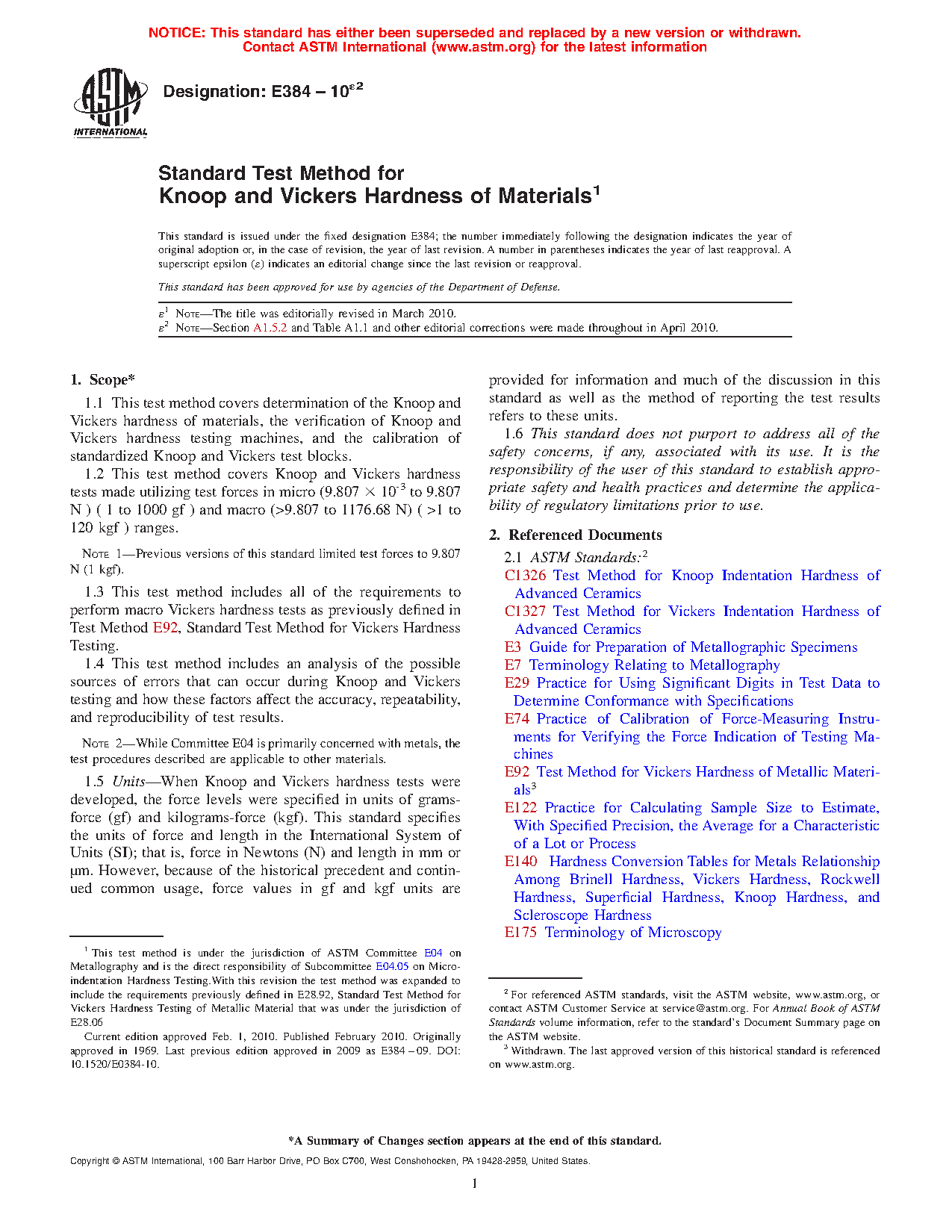 1.2 This test method covers microindentation tests made with Knoop and Vickers indenters under test forces in the range from 9.8 × 10-3 to 9.8 N (1 to 1000 gf).