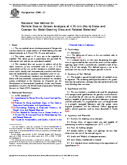 1.1 This test method covers the determination of the size distribution by screen analysis of metal-bearing ores and related materials at No. 4 (4.75-mm) sieve and coarser.