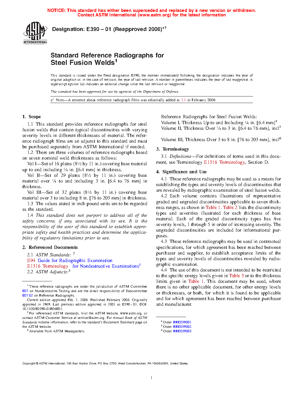 1.2 There are three volumes of reference radiographs based on seven nominal weld thicknesses as follows: