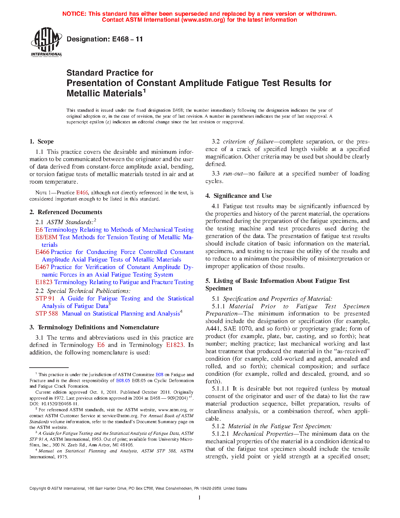 Note 1: Practice E466, although not directly referenced in the text, is considered important enough to be listed in this standard.