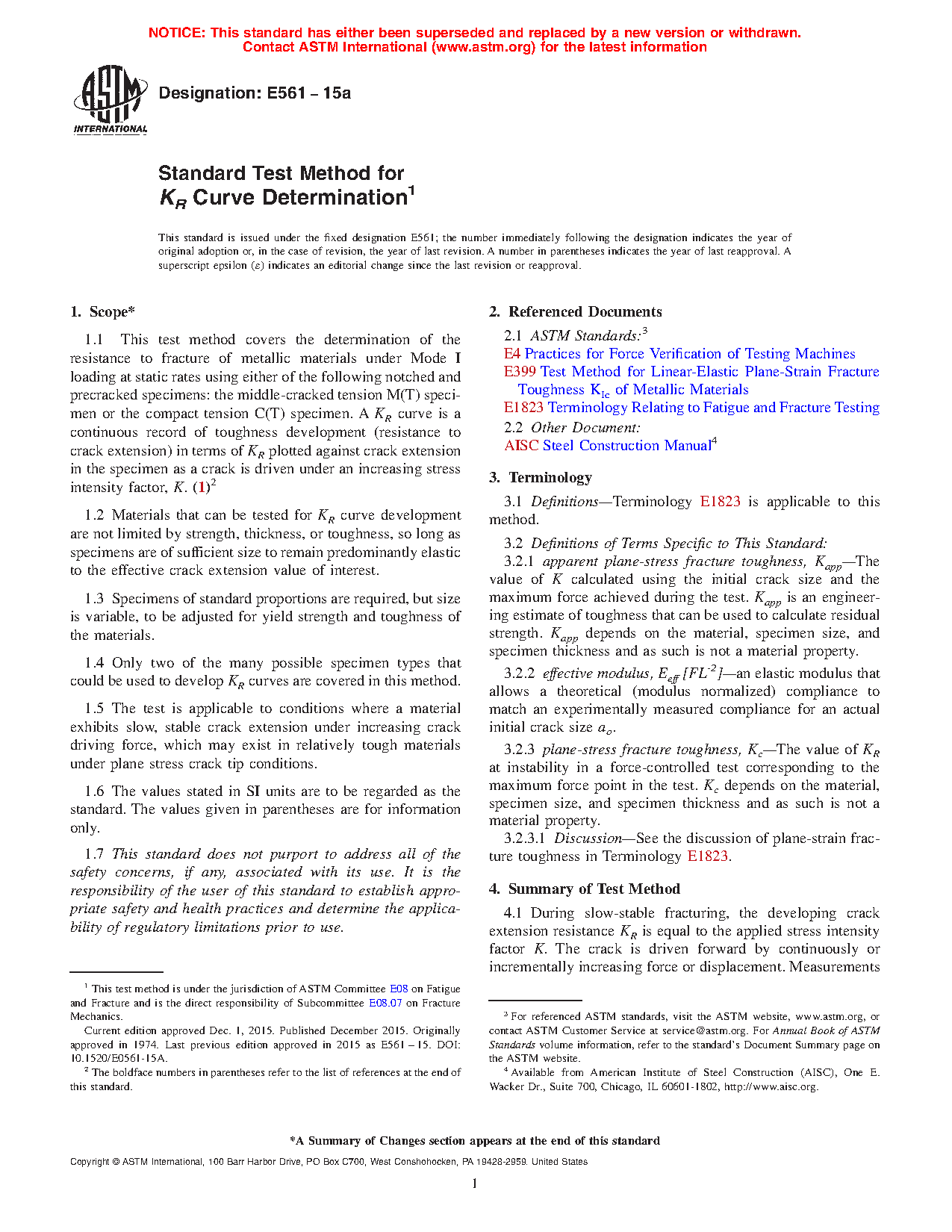 1.4 Only two of the many possible specimen types that could be used to develop KR curves are covered in this method.