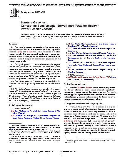 1.2 This guide provides recommendations for the preparation of test specimens for irradiation, and identifies special precautions and requirements for reactor surveillance operations and postirradiation test planning. Guidance on data reduction and computational procedures also is given for individual test methods. Reference is made to other ASTM test methods for the physical conduct of specimen tests and for raw data acquisition.