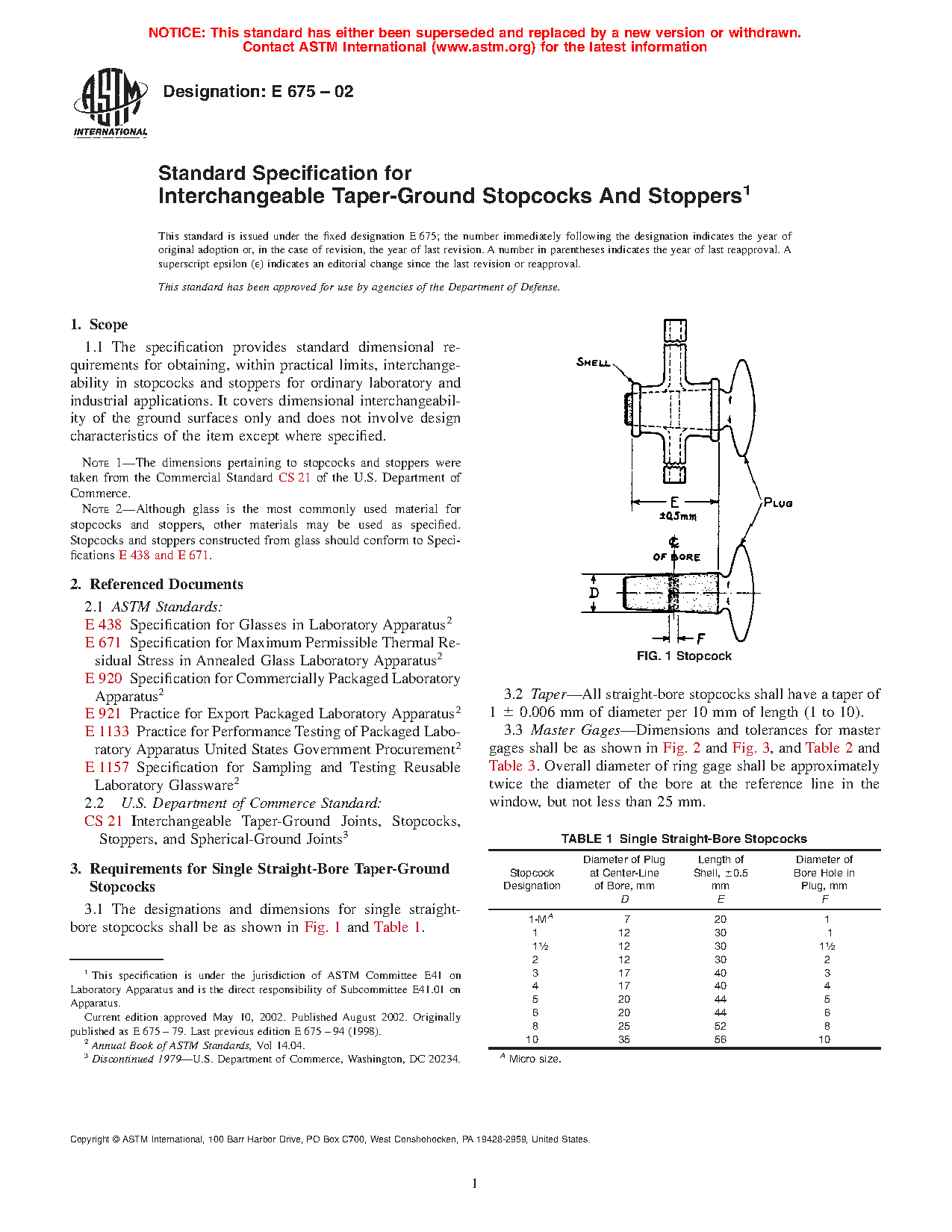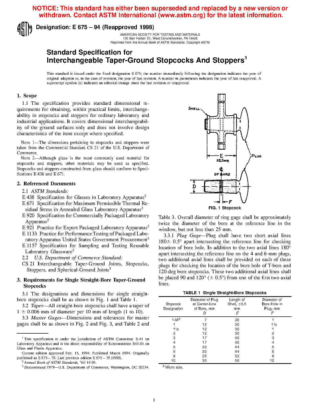 Note 1: The dimensions pertaining to stopcocks and stoppers were taken from the Commercial Standard CS 21 of the U.S. Department of Commerce.