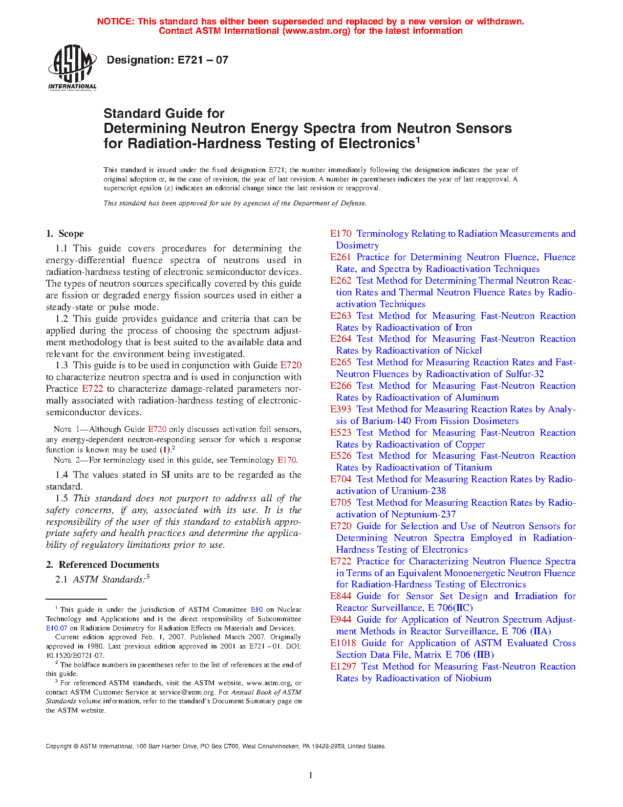 1.3 This guide is to be used in conjunction with Guide E720 to characterize neutron spectra and is used in conjunction with Practice E722 to characterize damage-related parameters normally associated with radiation-hardness testing of electronic-semiconductor devices.