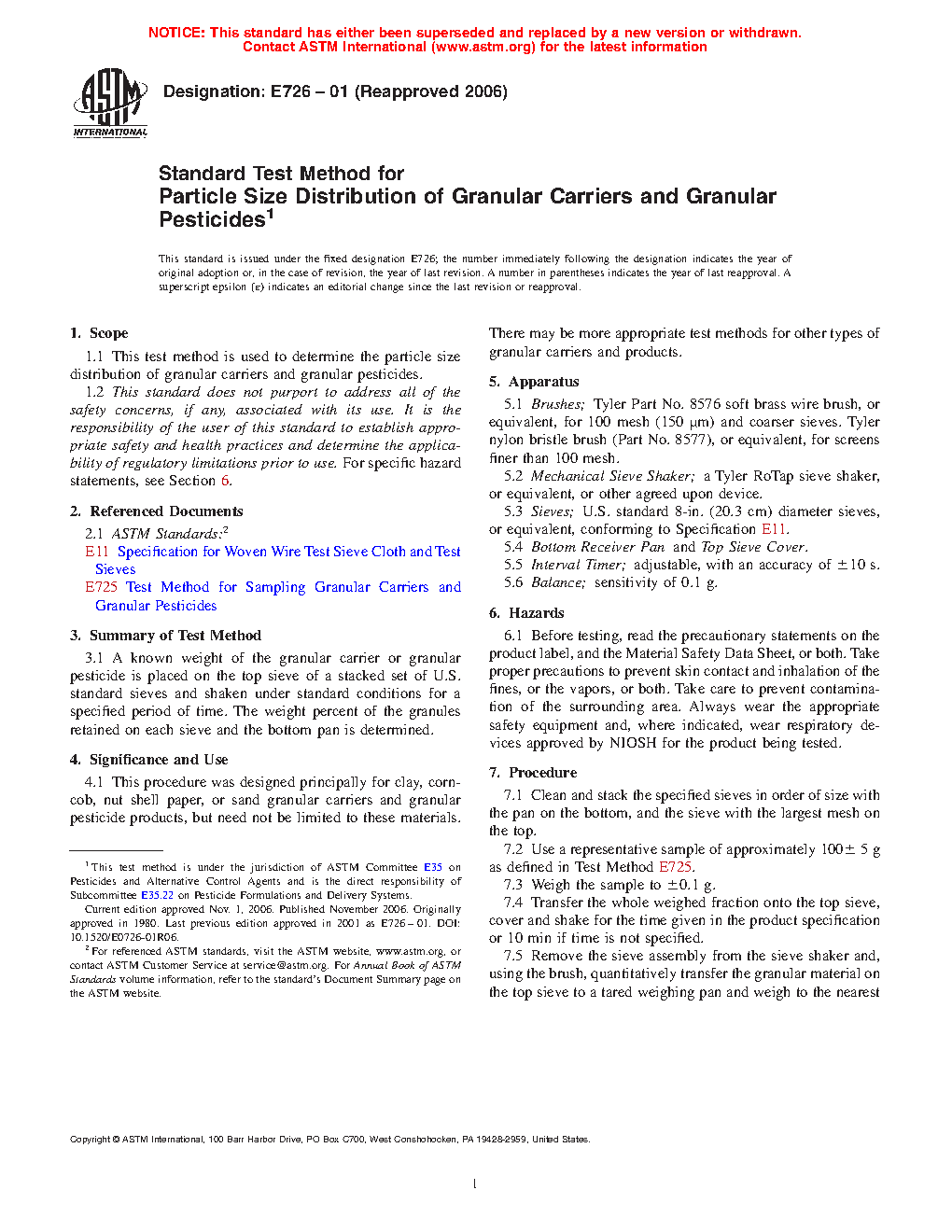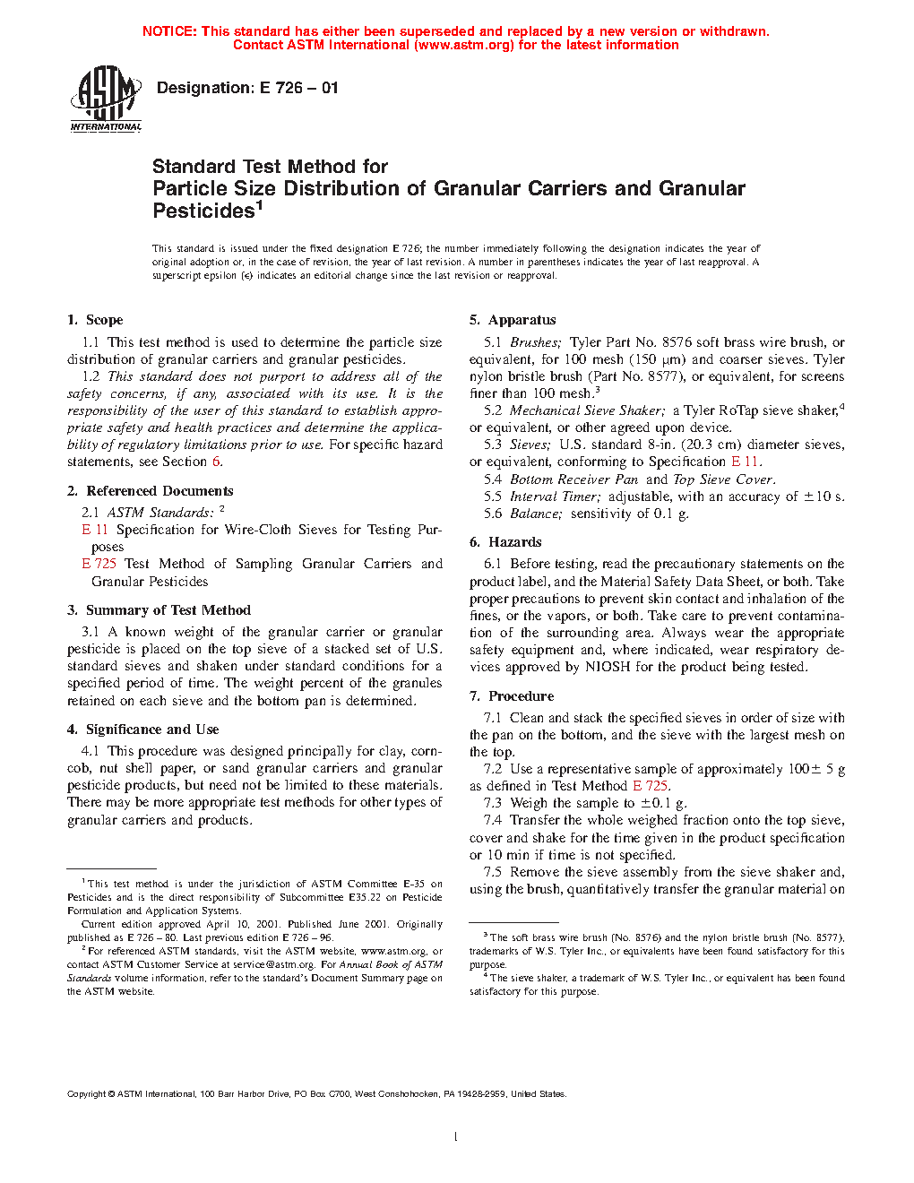 4.1 This procedure was designed principally for clay, corncob, nut shell, paper, or sand granular carriers and granular pesticide products, but need not be limited to these materials. There may be more appropriate test methods for other types of granular carriers and products.