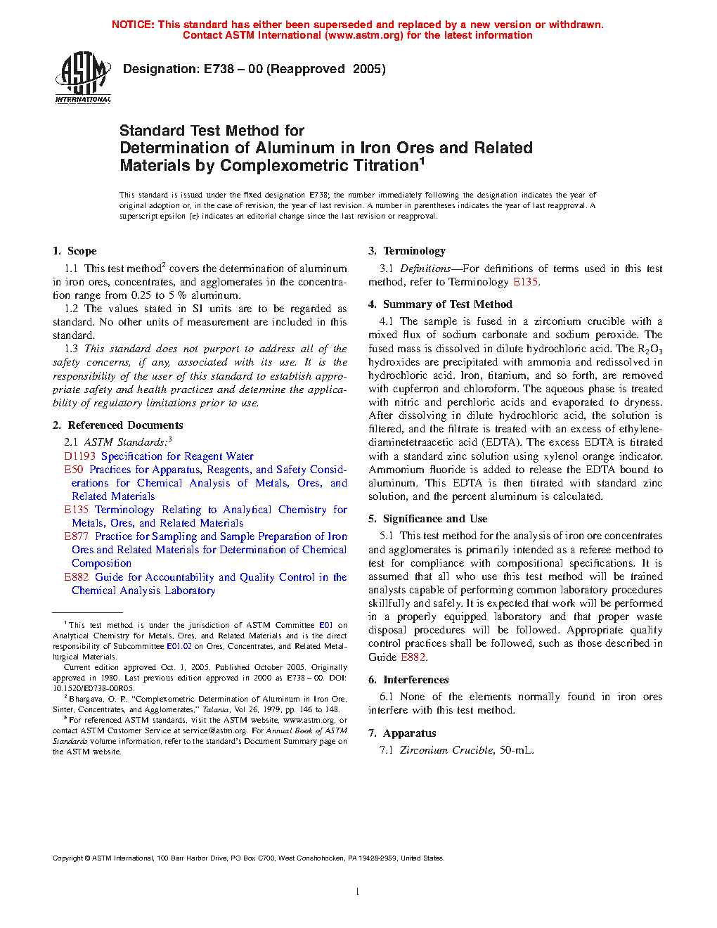 This test method for the analysis of iron ore concentrates and agglomerates is primarily intended as a referee method to test for compliance with compositional specifications. It is assumed that all who use this test method will be trained analysts capable of performing common laboratory procedures skillfully and safely. It is expected that work will be performed in a properly equipped laboratory and that proper waste disposal procedures will be followed. Appropriate quality control practices shall be followed, such as those described in Guide E882.