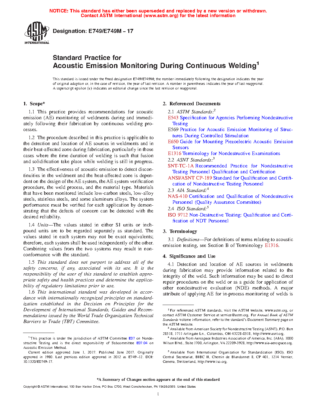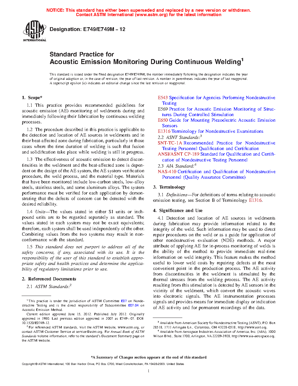 1.2 The procedure described in this practice is applicable to the detection and location of AE sources in weldments and in their heat-affected zone during fabrication, particularly in those cases where the time duration of welding is such that fusion and solidification take place while welding is still in progress.