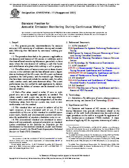 1.1 This practice provides recommendations for acoustic emission (AE) monitoring of weldments during and immediately following their fabrication by continuous welding processes.