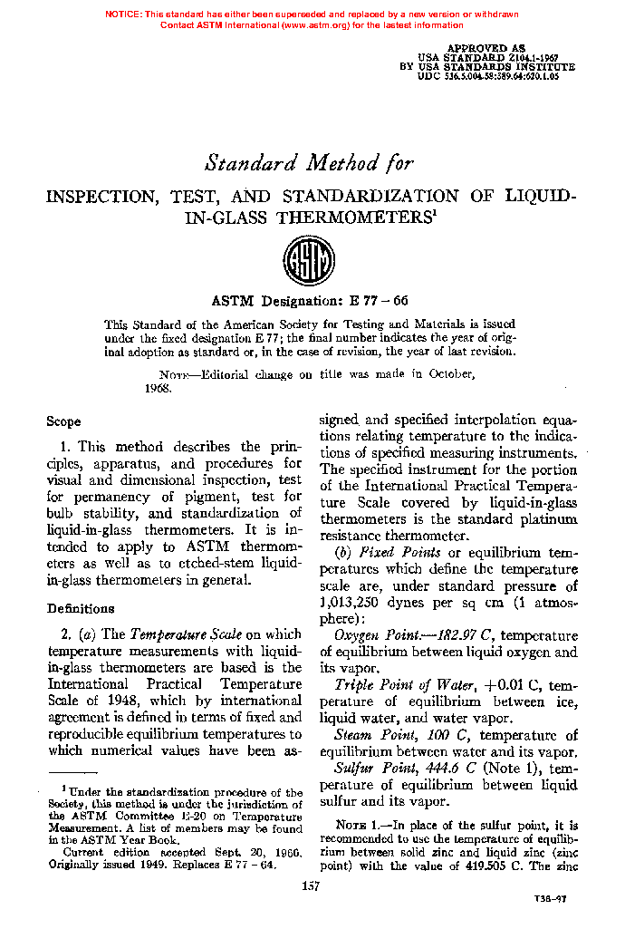 The test method described in this standard will ensure that the thermometers listed in Specification E 1