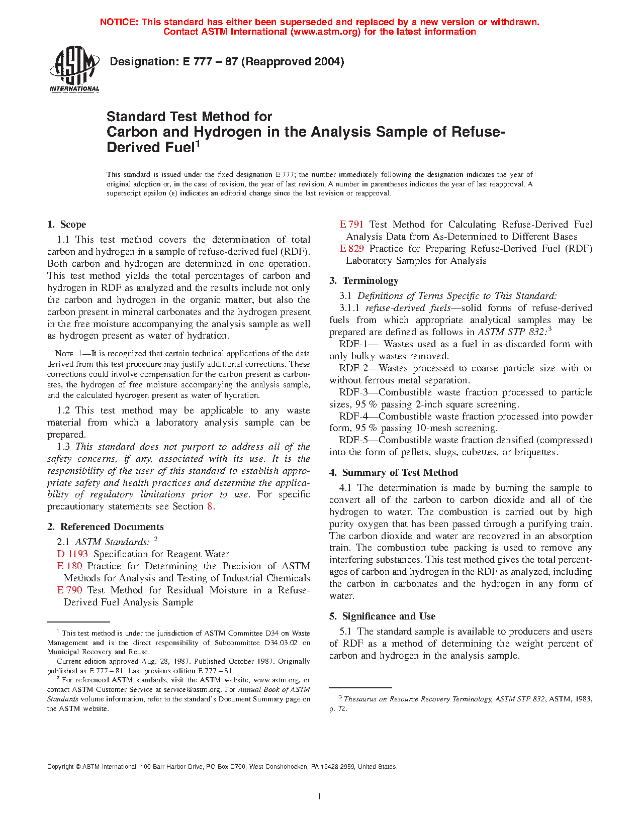 5.1 This standard is intended to provide a method for determining the weight percent of carbon and hydrogen in an RDF analysis sample.
