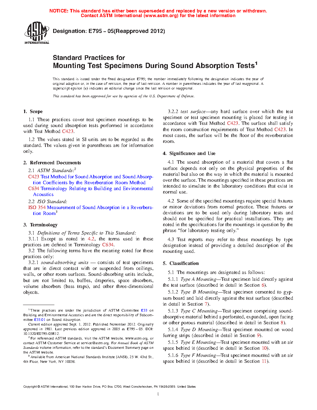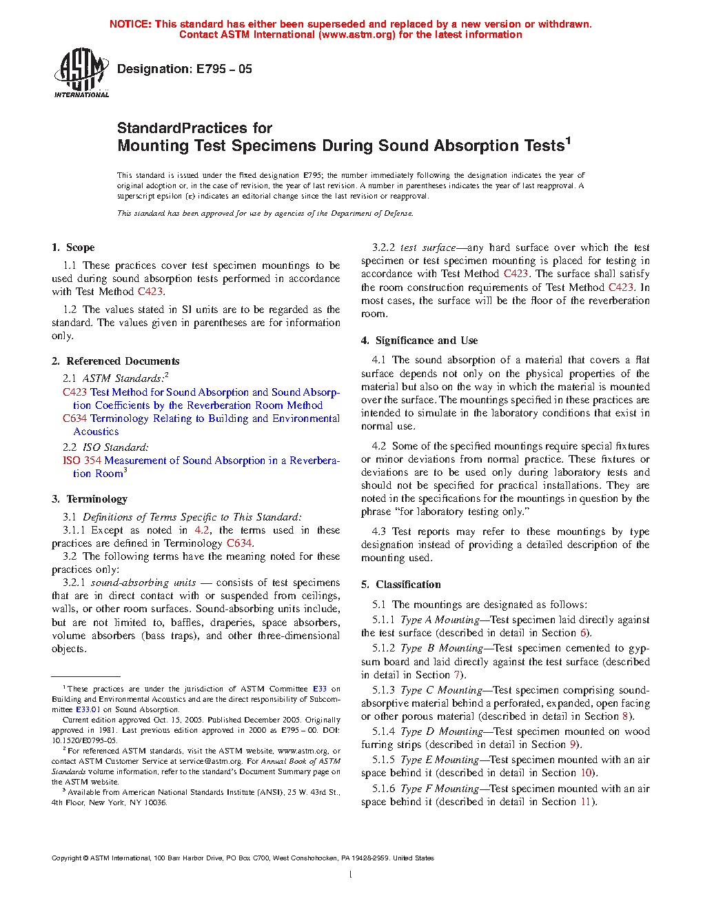 1.1 These practices cover test specimen mountings to be used during sound absorption tests performed in accordance with Test Method C423.