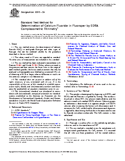 1.1 This test method covers the determination of calcium fluoride (CaF2) in acid-grade fluorspar and other types of fluorspar that can be rendered soluble by the procedure described in the test method.