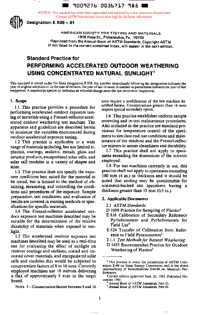 Practice for Performing Accelerated Outdoor Weathering Using Concentrated Natural Sunlight (Withdrawn 1992)